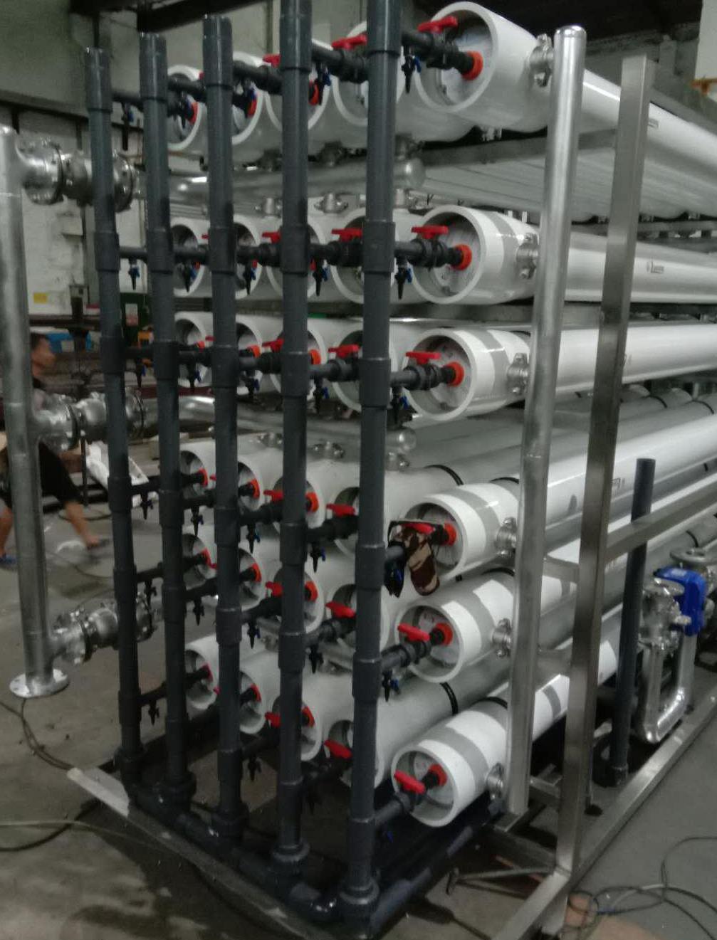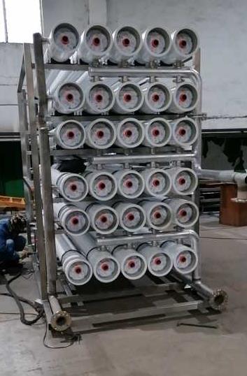 反滲透又稱逆滲透,是一種以壓力差為推動(dòng)力,從溶液中分離出溶劑的膜分離操作。對膜一側(cè)的料液施加壓力,當(dāng)壓力超過它的滲透壓時(shí),溶劑會(huì)逆著自然滲透的方向作反向滲透。從而在膜的低壓側(cè)得到透過的溶劑,即滲透液;高壓側(cè)得到濃縮的溶液,即濃縮液。若用反滲透處理海水,在膜的低壓側(cè)得到淡水,在高壓側(cè)得到鹵水。